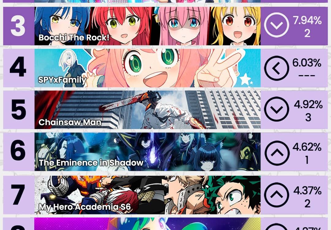 Mob Psycho 100 Temporada 3, Akiba Maid War y Bocchi The Rock, se ubican en el podio.