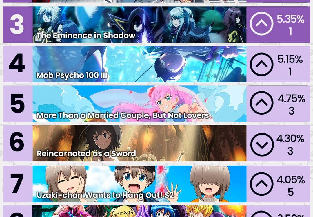 A destacar el ascenso en el top del anime More Than Married Couple, but Not Lovers, Uzaki-chan e Iruma-kun temporada 3