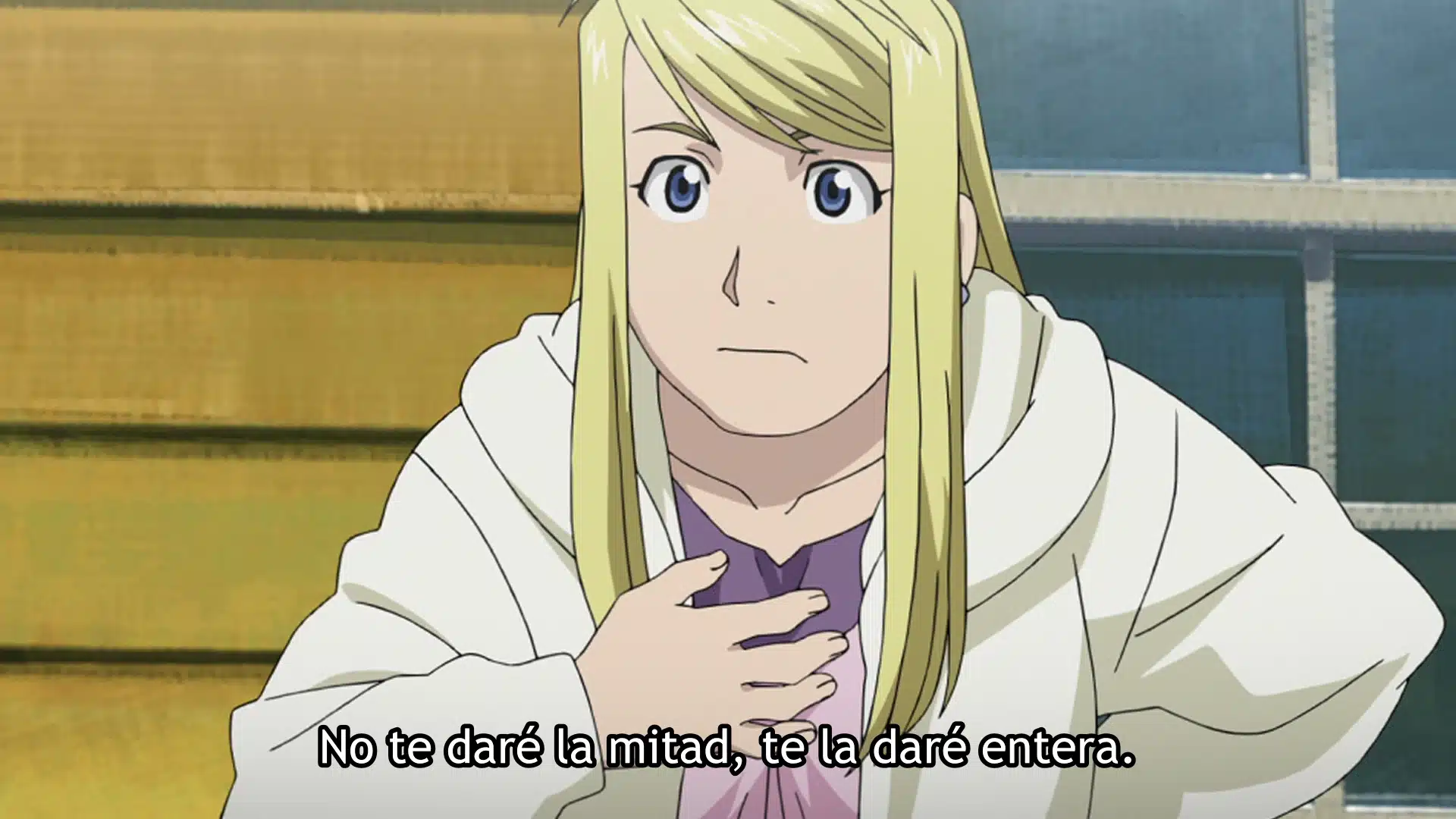 «Un intercambio equivalente. Te daré la mitad de mi vida, así que dame la mitad de la tuya.» El último episodio del anime Fullmetal Alchemist: Brotherhood trajo consigo una de las declaraciones de amor más recordadas por la comunidad otaku, siendo catalogada por algunos como una de las mejores al ser expresadas con la narrativa la serie, sumado a las reacciones de Edward y Winry a las palabras de cada uno.