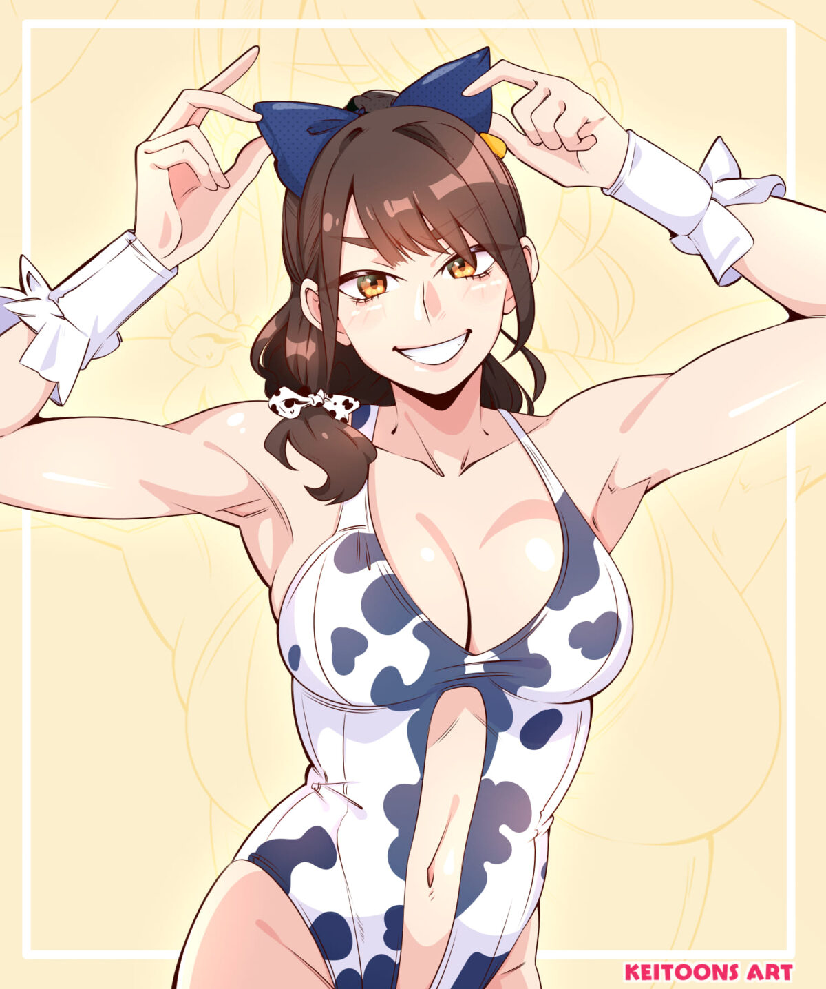 En la ilustración, podemos observar a una hermosa mujer voluptuosa con un sensual atuendo de vaca que resalta su atractivo físico y quien es la madre del artista. Detalles que ciertamente le dan un aura erótica bajo una pose dulce e inocente en un estilo anime.