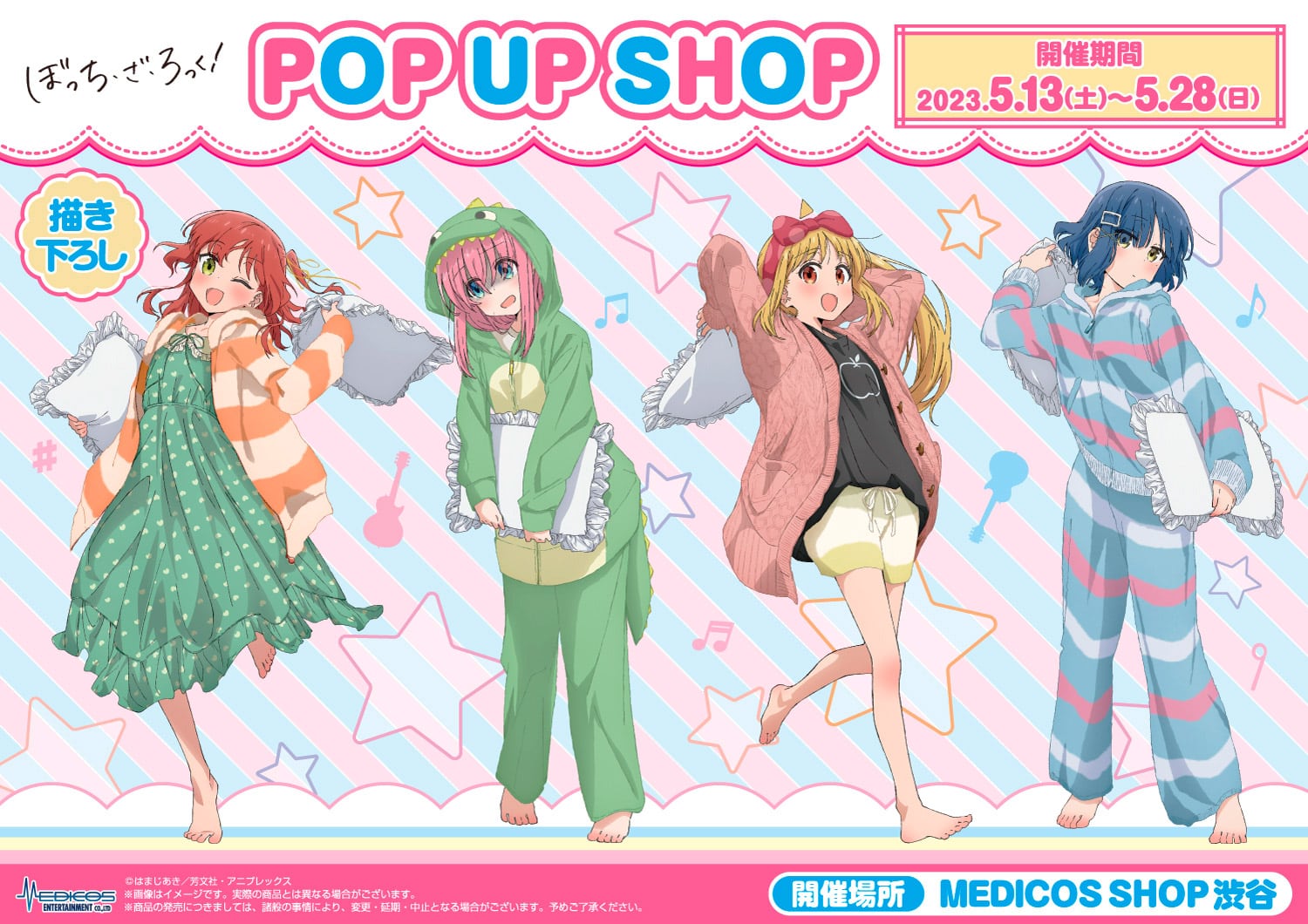 Esta colaboración entre la compañía Medicos Entertainment y el anime Bocchi the Rock! está programada para llevarse a cabo del 13 al 28 de mayo de este año. Consistirá en la apertura de una tienda «POP UP SHOP«, en la que se exhibirán al público una variedad de productos basados en los personajes de la serie: la protagonista Hitori Goto, la radiante Ikuyo Kita, la excéntrica Ryo Yamada y la extrovertida Nijika Ijiki. Cabe señalar que la mayoría de los productos contarán con la ilustración presentada en la imagen promocional impresa en ellos.