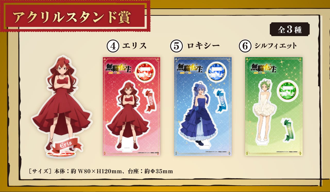 En el sitio web para la adaptación al anime de la novela ligera Mushoku Tensei: Isekai Ittara Honki Dasu (Jobless Reincarnation: I Will Seriously Try If I Go to Another World) se informó sobre una colaboración con una lotería en el que se sortearan diferentes productos inspirados en los personajes Roxy Migurdia, Eris Boreas Greyrat y Sylphiette.