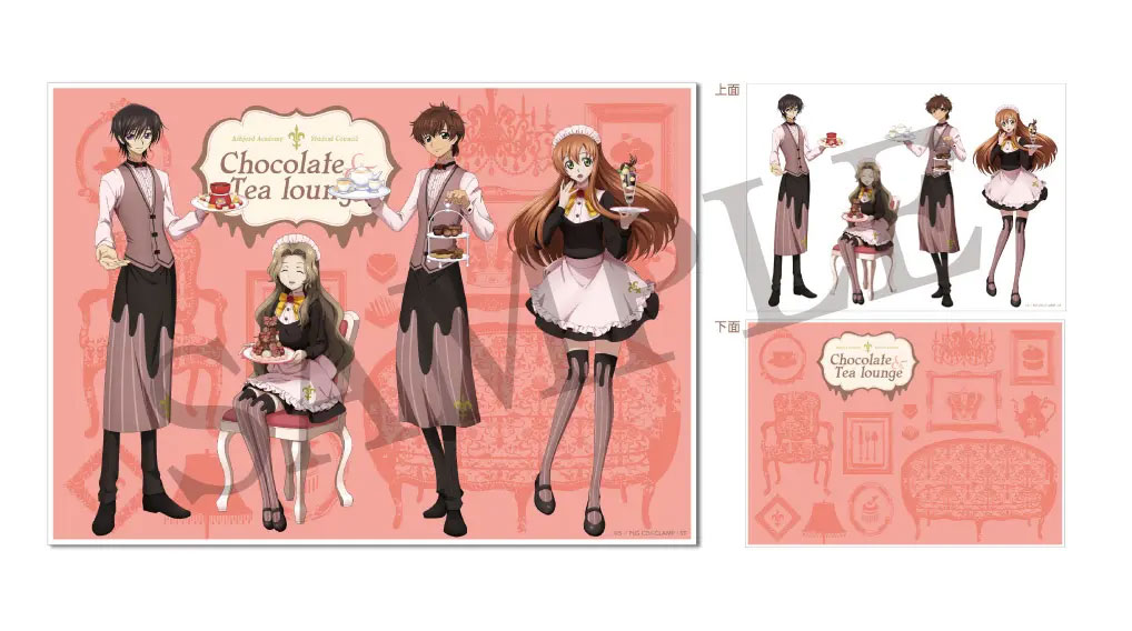 Como se mencionó previamente, la colaboración entre la cafetería «Animate Cafe» y el anime «Code Geass» ya ha comenzado, y tendrá una duración hasta el próximo 27 de marzo de este año. En esta ocasión, los personajes Lelouch, Suzaku, Shirley y Nunnally se vestirán de meseros para la producción de productos limitados que solo estarán disponibles únicamente para esta colaboración.