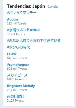 El hashtag #Aqours es tendencia junto con Brightest Melody en Japón, pero aparece como tendencia principal a los usuarios que personalizado este apartado.