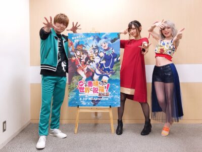 Para promocionar el estreno en cines de la nueva película de Konosuba, los seiyuus del anime compartieron fotos en redes sociales en celebración por el éxito de la película.