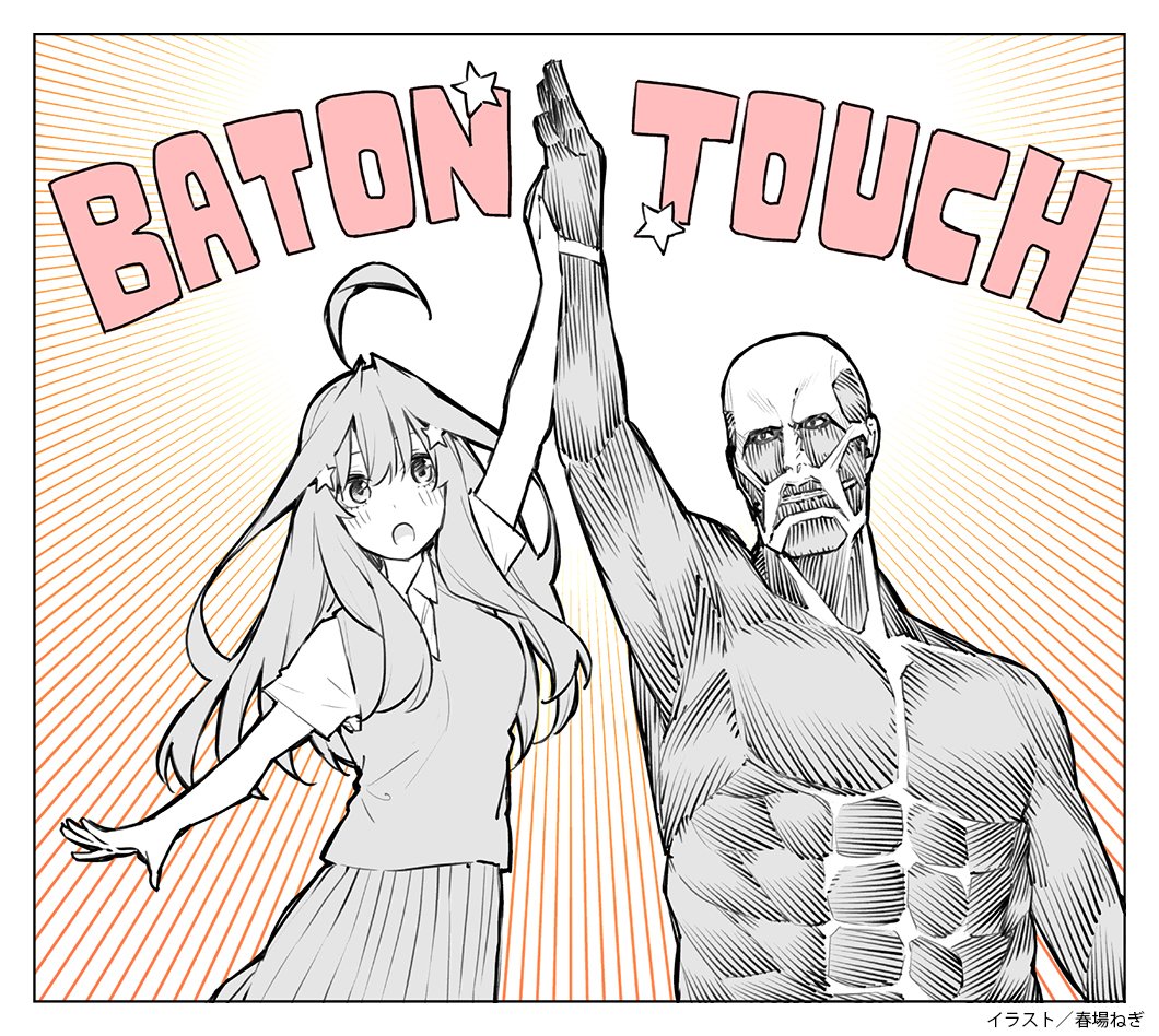 Para celebrar el regreso de la tercera temporada de Shingeki no Kyojin se realizó una colaboración con el anime Go-toubun no Hanayome.