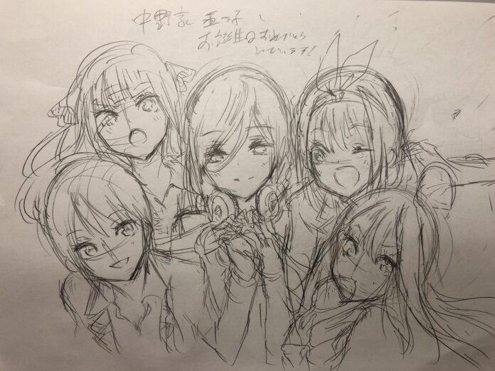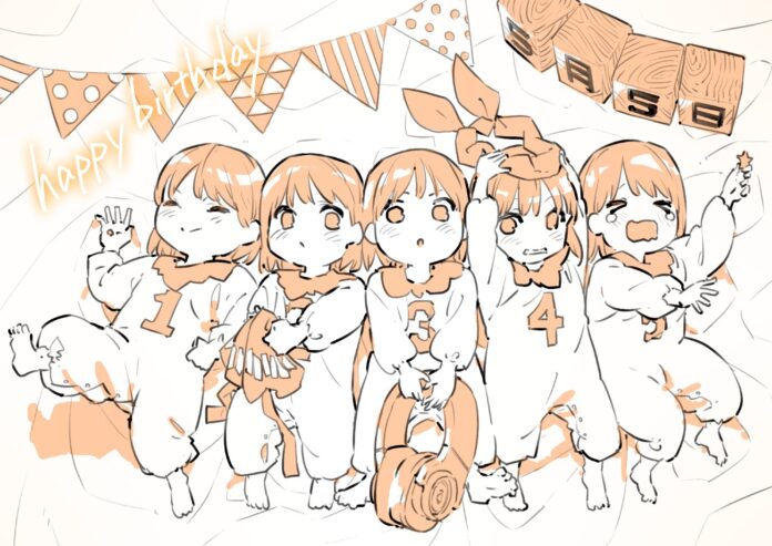 Para conmemorar el cumpleaños de las hermanas Nakano, el mangaka Tsutsui compartió una ilustraciones de las quintillizas y compartió dos versiones de la ilustración.