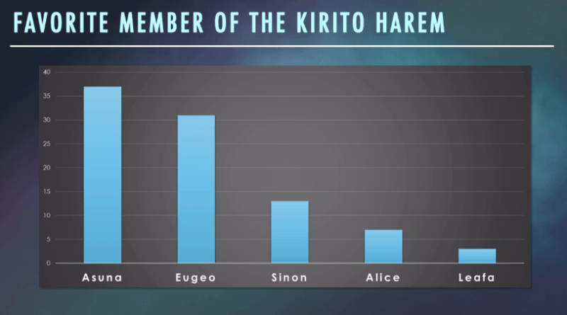 También se revelaron los personajes favoritos del harem de Kirito. La favorita de los fans fue Asuna, mientras que Eugeo fue el segundo favorito, y en tercer lugar quedó Sinon.