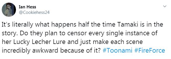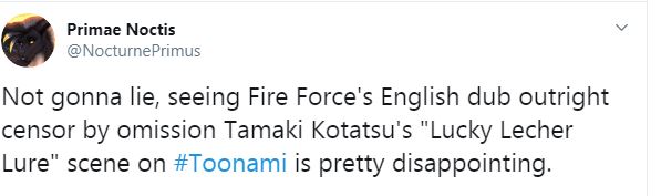 Recientemente bloque televisivo Toonami comenzó la emisión del anime Fire Force con doblaje al inglés, por lo que muchos fans estaban emocionados, pero lamentablemente el episodio 3 sufrió una censura que hizo enojar a los fans.