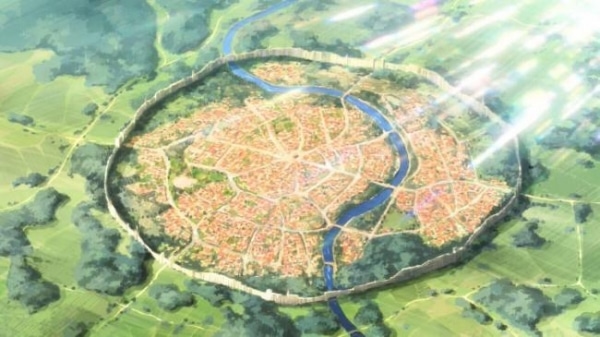 Las tres ciudades son casi identicas, más las de Tate no Yuusha no Nariagari y Konosuba, mientras que la ciudad de Kenja no Mago tiene un ligero cambio.