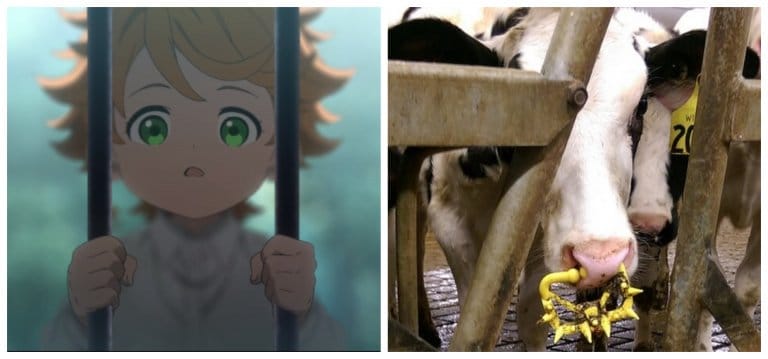 Según PETA, los personajes del anime Yakusoku no Neverland viven en lo que se llama una “granja premium”. Comen comidas gourmet, tienen “tiempo libre” al aire libre y juegan con todos los juguetes que podrían desear. Suena como una vida muy bonita, hasta que se descubre que son el ganado de criaturas espeluznantes.
