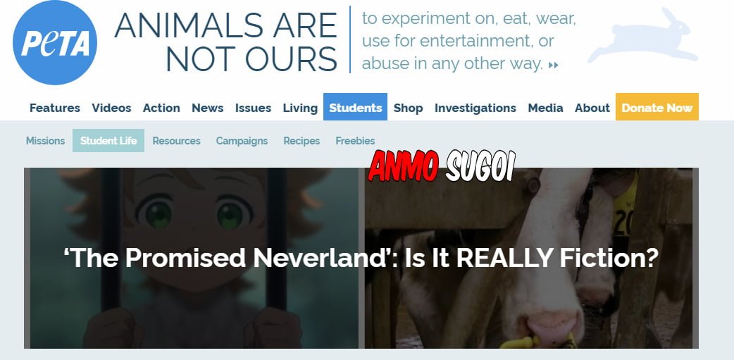 La organización PETA, la cual lucha contra el maltrato animal, redacto una nota en la cual compara el anime Yakusoku no Neverland con el maltrato animal de la vida real.