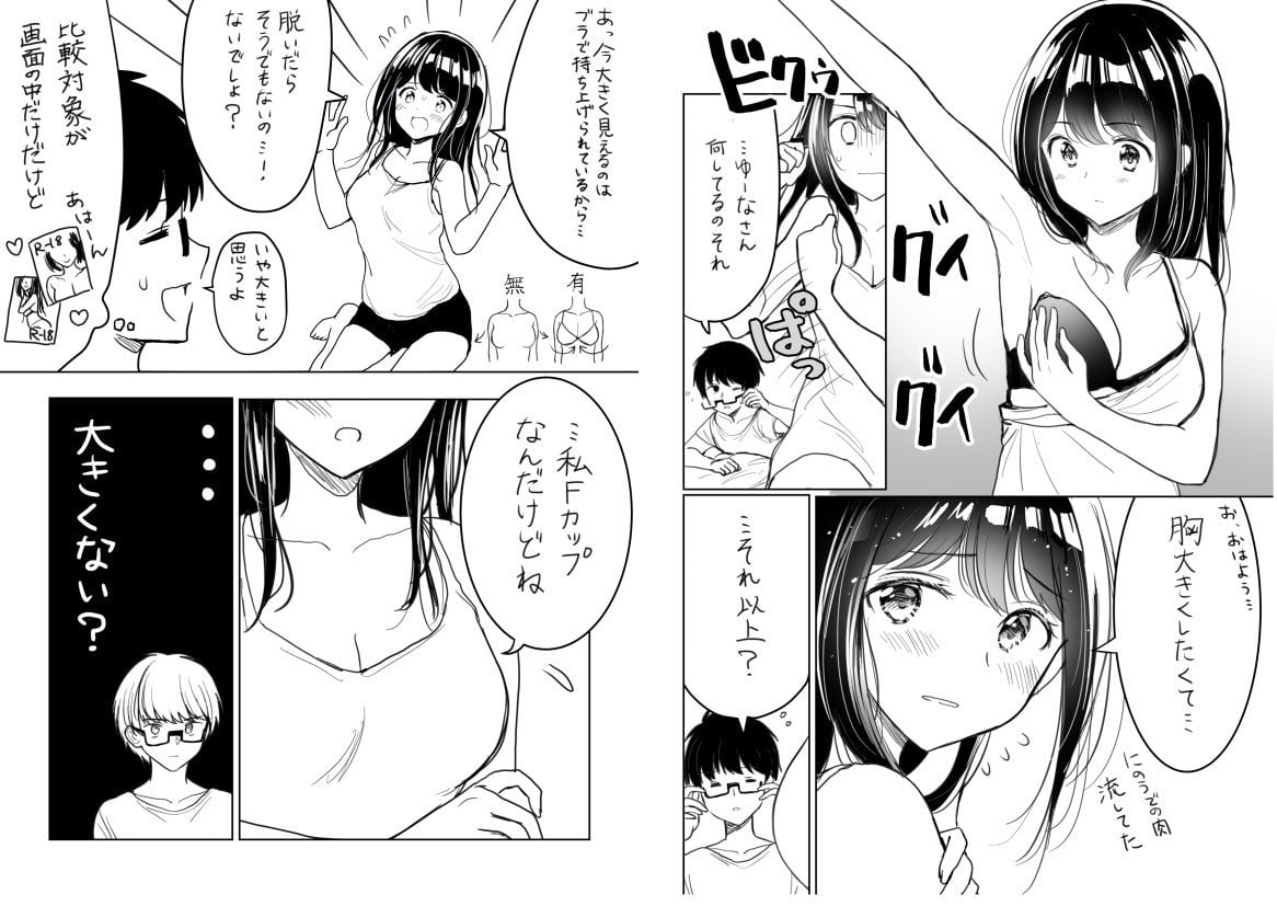 Y este manga, en el que una chica espera que su novio la deje embarazada después de leer en Internet que el tamaño del busto de las mujeres aumenta durante el embarazo.