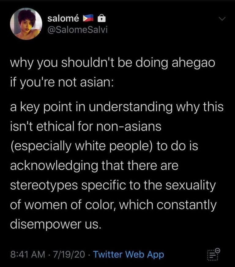 im asian, west asian exactly. this take is shit. you can do ahegao even if youre white.