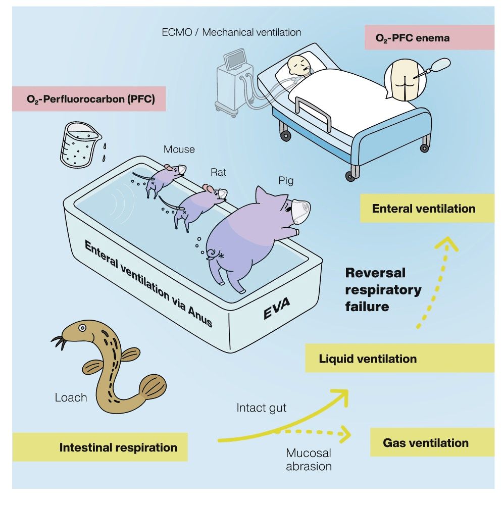 Los investigadores mencionan: «El enfoque de prueba de principio de EVA es eficaz para proporcionar [oxígeno] y aliviar los síntomas de insuficiencia respiratoria en dos sistemas modelo de mamíferos»; Aquellos animales no experimentaron efectos secundarios aparentes por el tratamiento poco ortodoxo.