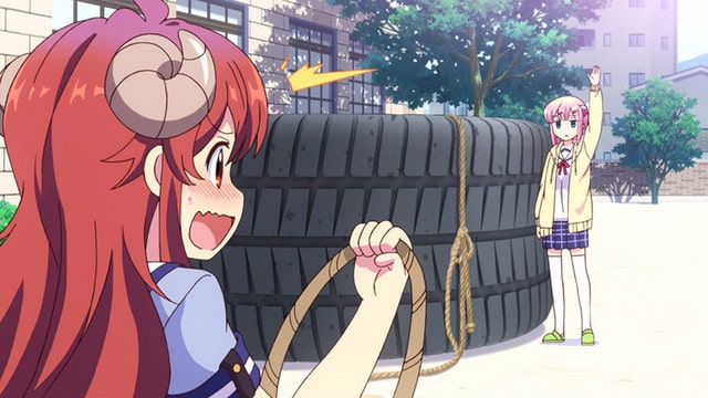 En el Tweet mencionado, el usuario de Twitter Yamamaya pregunta cuánto pesa el neumático cuando la chica mágica Momo Chiyoda lo levanta sin esfuerzo en una escena de The Demon Girl Next Door.