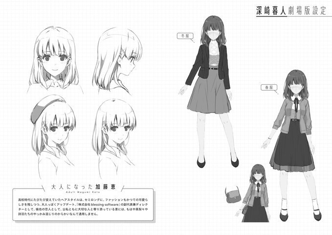 El segundo volumen de Saekano Memorial reveló los diseños conceptuales de cómo se verían las protagonistas de la franquicia en su versión más adulta.