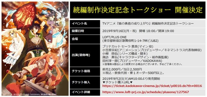Para conmemorar el anuncio de la segunda y tercera temporada el anime Tate no Yuusha no Nariagari (The Rising of the Shiel Hero), el sitio web del anime reveló que se realizará un evento conmemorativo del anime.