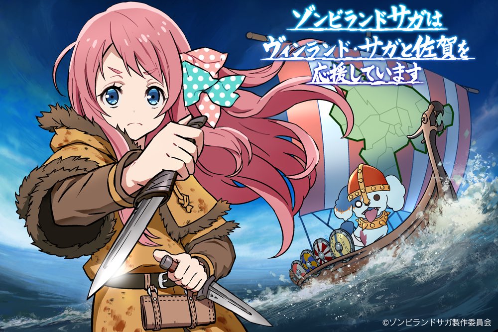 Al parecer el fandom de Zombieland Saga aprovechó el estreno de Vinland Saga para bromear entre las dos series por su similar pronunciación en japones. Vinland Saga [Binrando Saga] contra Zombieland Saga [Zon Birando Saga]. Aprovechando y siguiendo el hilo de la broma, la cuenta oficial de Twitter de Zombieland Saga, pidiendo disculpas al autor Makoto Yukimura de Vinland Saga por la conveniencia, publicó una ilustración de colaboración para conmemorar el estreno de Vinland Saga.
