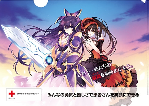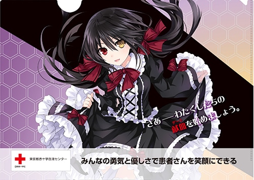 Además, al donar 400 ml de sangre recibirás una carpeta de Kurumi y Tohka durante la primera parte de la colaboración y una carpeta de Kurumi en la segunda parte de la colaboración.
