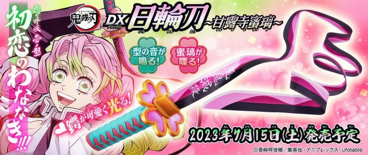 Por lo cual en esta ocasión Bandai Toy Division está planeando lanzar al mercado la katana Nichirin de Mitsuri Kanroji, pilar del amor, la cual cuenta con un diseño que la distingue de los demás pilares, ya que el guardamano se encuentra compuesto de cuatro corazones y otra característica importante es que la hoja de la katana es muy flexible, lo cual le permite hacer movimientos únicos que los demás pilares no pueden realizar.
