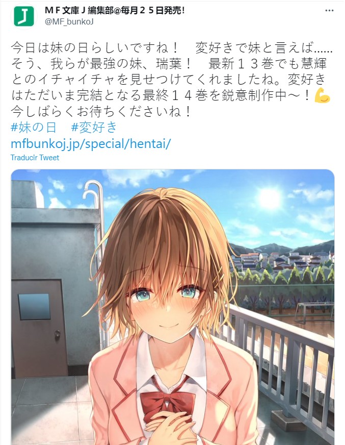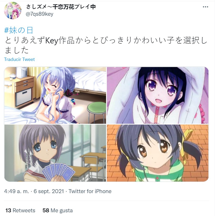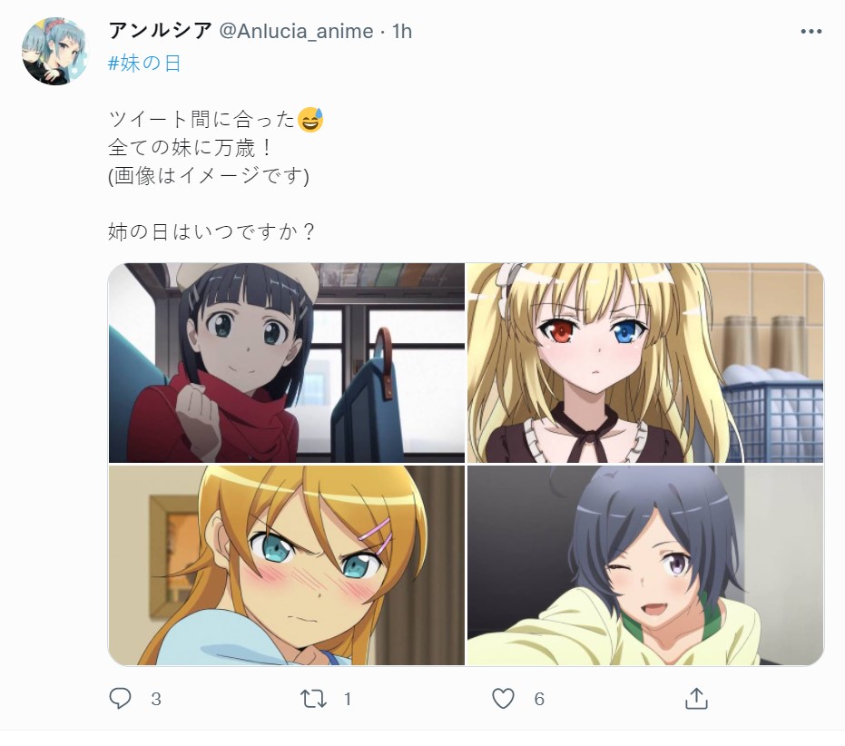 Bajo el Hashtag «#妹の日«, diferentes usuarios y también medios oficiales han mostrado su amor hacia las hermanas menores que aparecen en las diferentes obras de Japón. Veamos como han celebrado este día.
