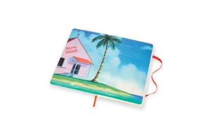 Goku, Shenron, Master Roshi, Bulma, Oolong, y otros personajes de Dragon Ball aparecen en las portadas de los cuadernos, ademas contienen un bolsillo trasero ampliable con esferas del Dragón, arte de la Cápsula Corp, un marcador y stickers para cada uno de ellos. Cada cuaderno cuesta alrededor de 30 dólares y se pueden conseguir en la tienda online de Moleskine.