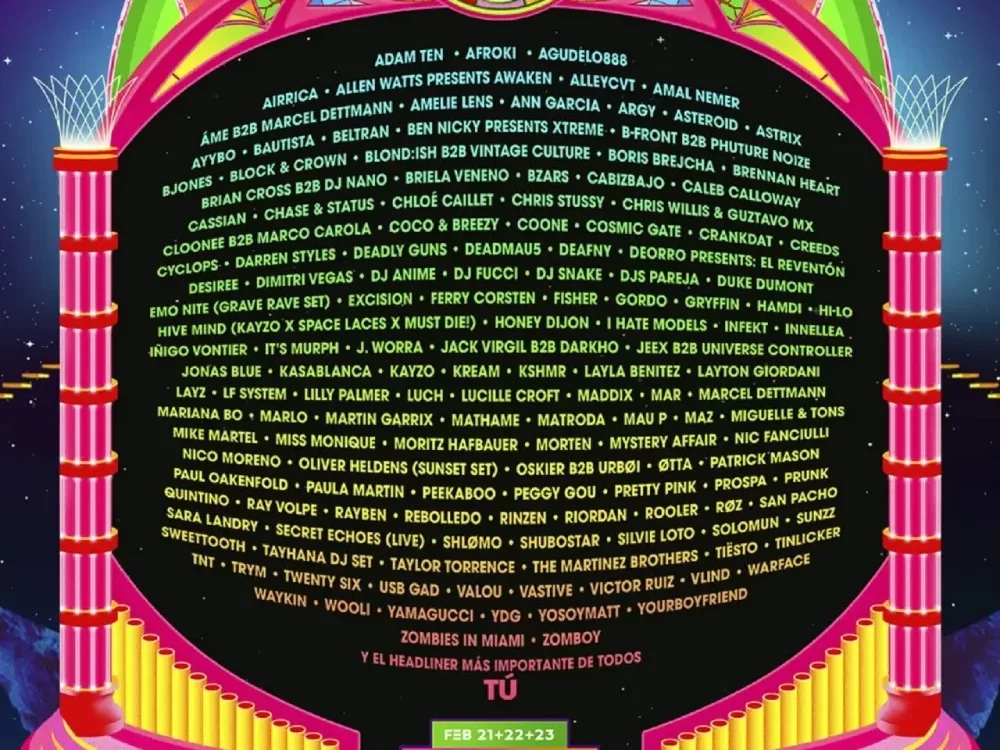 La lista de invitados incluye a personalidades como Adam Ten, Afroki, Airrica, Allen Watts Presents Awaken, Áme B2B Marcel Dettmann, Amelie Lens, Ann García, Argy, Asteroid, Astrix, Ayybo, Bautista, Beltrán, Ben Nicky Presents Xtreme, B-Front B2B Phuture Noize, Bjones, Block & Crown, Boris Brejcha, Cassian, Dj Snake, Deadmau 5, Peggy Gou, YoSoyMatt, etc.