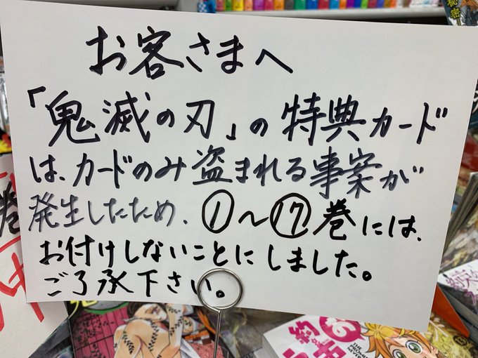 Según la nota anterior, algunas personas han estado robando volúmenes del manga recientemente, por lo que la tienda ha decidido que ahora los fans que quieran comprar un volumen deberán pedirle una copia al cajero.