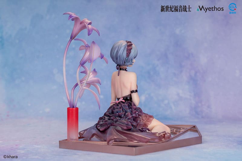 Mientras que la figura Ayanami Rei Hana no Kotoba Ver. mide 15.5 cm y retrata a Rei con una mirada ligeramente melancólica y su vestido, que se asemeja a un ramo de flores, pintado con un efecto degradado.