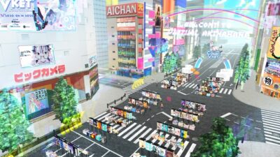 Los 60 restaurantes y tiendas de electrónica que realmente existen en el barrio de Akihabara se alinearon en el espacio virtual para entregar cupones de compras a los visitantes. Incluso en la situación actual en que la infección por COVID-19 dificultaba que las personas salieran a la calle, este evento virtual ofreció a las tiendas la oportunidad de mantener el contacto con sus clientes.
