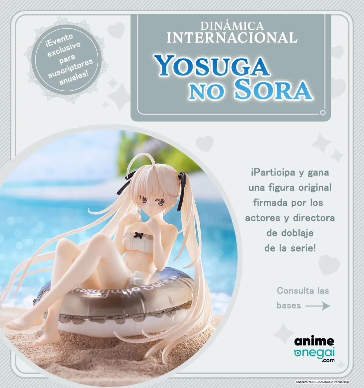 No pierdas esta oportunidad única de ganar una figura de Yosuga no Sora firmada por los actores de doblaje. Recuerda que al ser suscriptor anual o mensual de la plataforma tendrás acceso a eventos exclusivos, información, regalos y muchas sorpresas más que te harán vivir el anime como nunca antes.