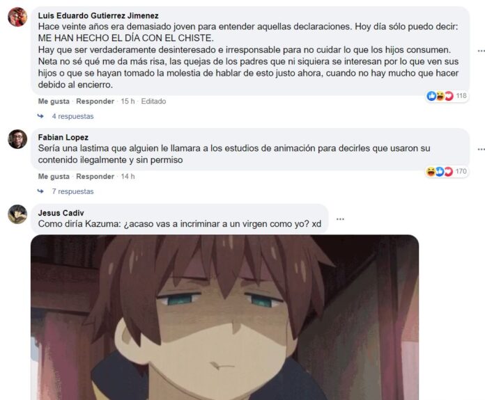 En la publicaciรณn de la nota periodรญstica en Facebook, vemos como usuarios expresan su enojo por utilizar contenido de anime sin el consentimiento de sus creadores para crear una nota amarillista. Incluso, muchos usuarios explican que ellos no son responsables del desinterรฉs de los padres por exponer a sus hijos a contenido creado para mayores de edad.