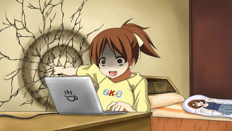 Alguien me dice el name de la chica que golpea la pared frentes a su lapto (que es la portada del tรญtulo por si acaso)