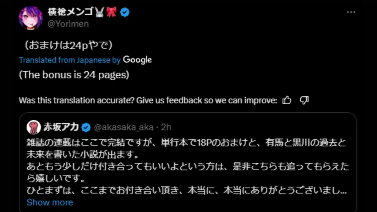 El desenlace del popular manga Oshi no Ko ha generado controversia entre sus seguidores, luego de que el autor escribiera en un post la cantidad de páginas que compondrán el volumen final de manera errónea. Esta declaración ha causado preocupación y descontento en la comunidad de fans, quienes temen que la falta de claridad afecte el cierre de una historia que ha mantenido altos niveles de popularidad.