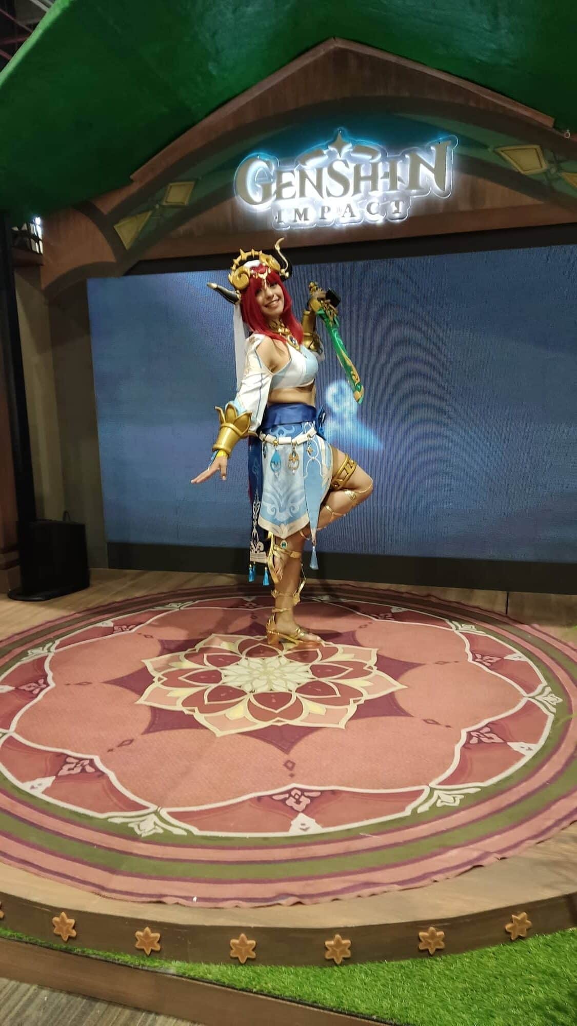 Tematizado de la región de Sumeru, cada espacio es aprovechado al máximo, tendiendo la zona de tablets y pc donde podrás desafiar algunos de los divertidos retos para ganar recompensas. Tenemos la sección de cosplayers, donde increíbles invitadas darán vida a nuestros personajes favoritos y con las cuales podremos tomarnos fotos, claro, todo esto teniendo de fondo una increíble pantalla gigante que reproducirá continuamente ciertos videos alusivos a Sumeru.