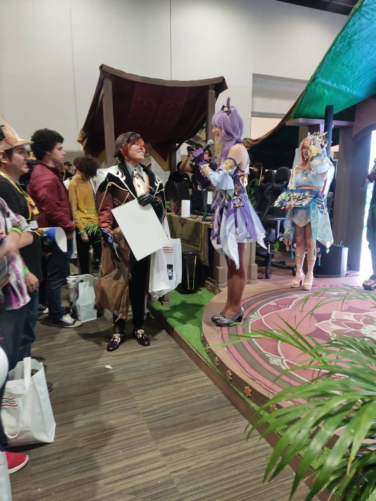 Mucho hablar del stand, pero tenemos que hablar del alma y motivo principal del que podamos disfrutar de este increíble stand, los protagonistas de Genshin Impact, los viajeros, ¡Que no son otros que nosotros los propios jugadores!. El ambiente que se vivió fue simplemente genial, con una gran convivencia entre todos los fanáticos mientras se realizaban distintas dinámicas de la mano de increíbles cosplayers invitadas.