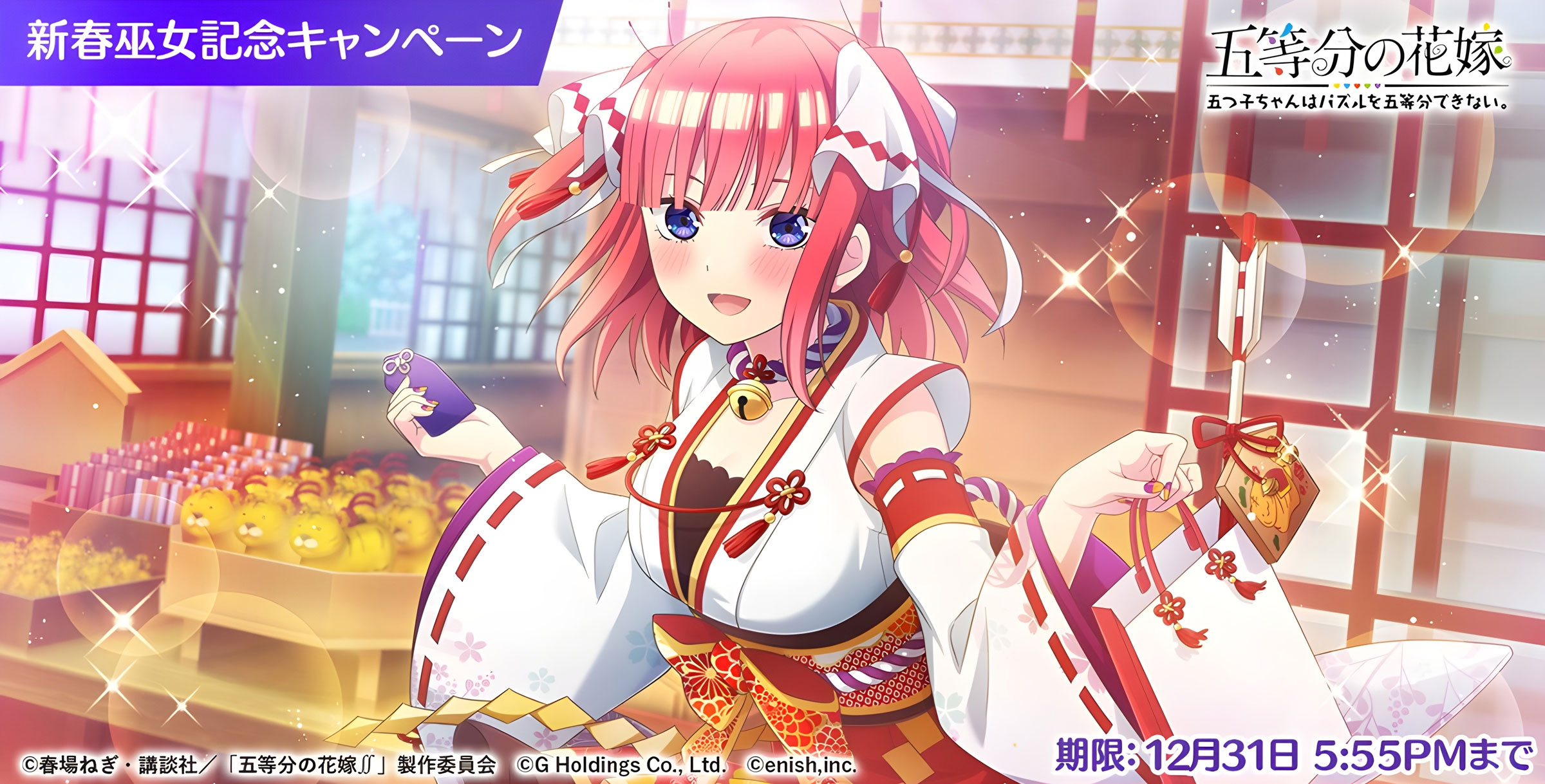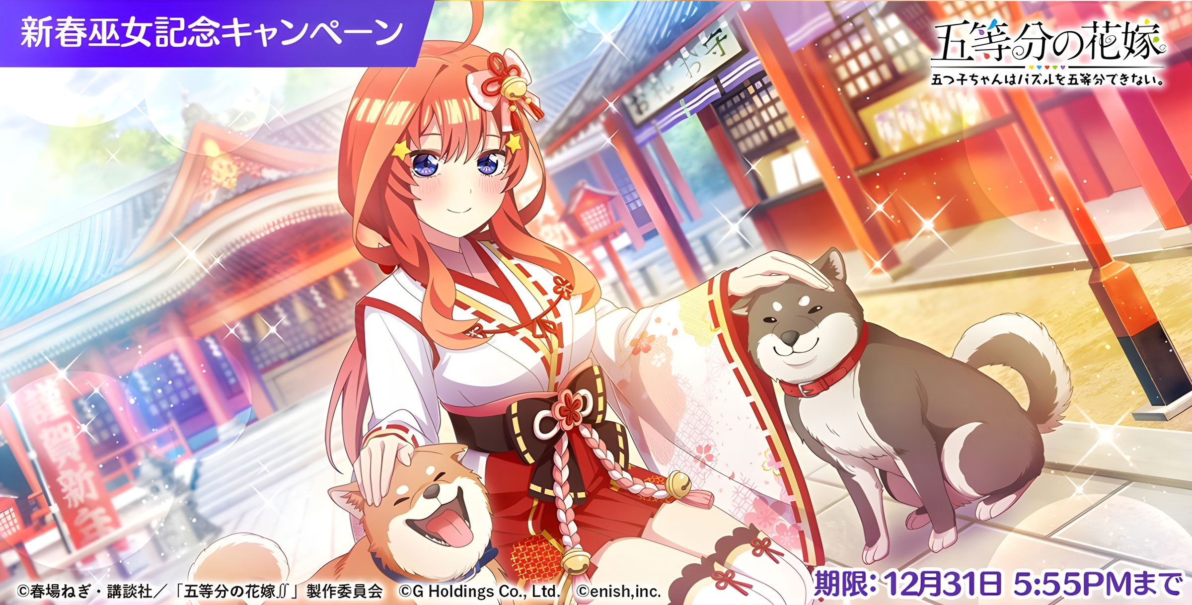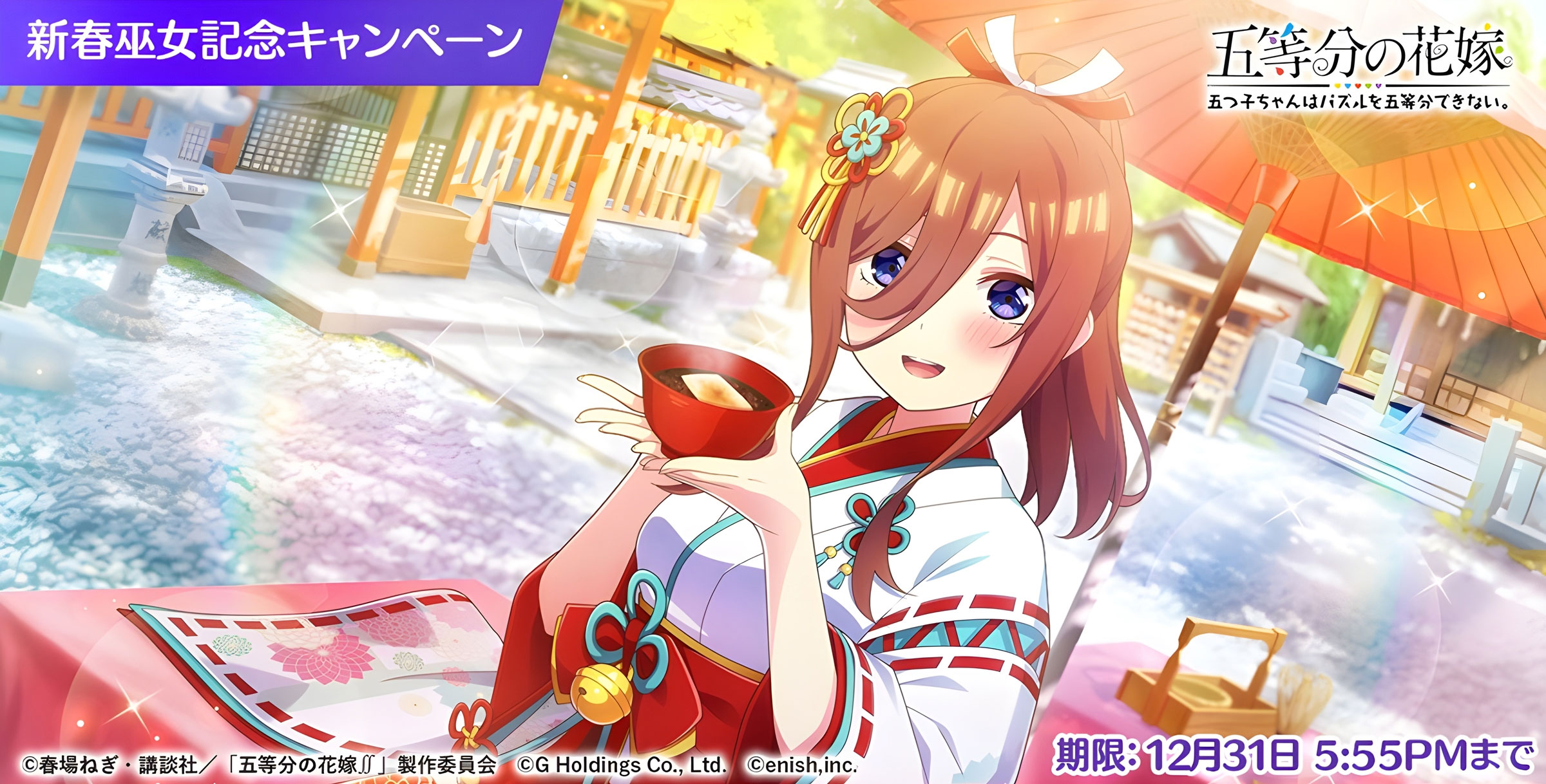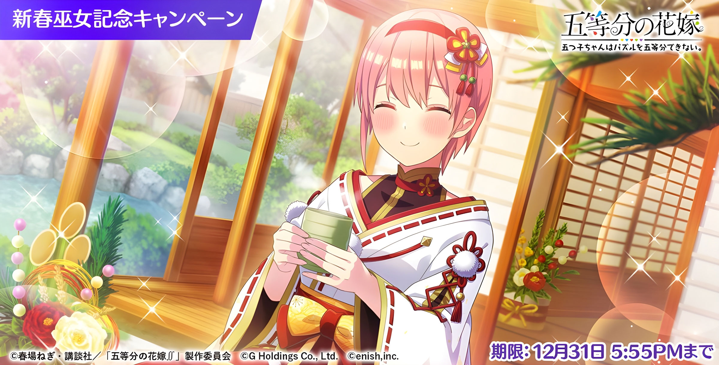 En el Twitter oficial para el vídeojuego para smartphones de la franquicia Go-Toubun no Hanayome (The Quintessential Quintuplets) titulado «Go-Toubun no Hanayome: Itsutsu-ko-chan wa Puzzle wo Go-Toubun Dekinai» se anunció el comienzo de un evento especial en conmemoración a «Año Nuevo». De manera adicional, se compartió una ilustración especial en conmemoración al nuevo evento del juego.