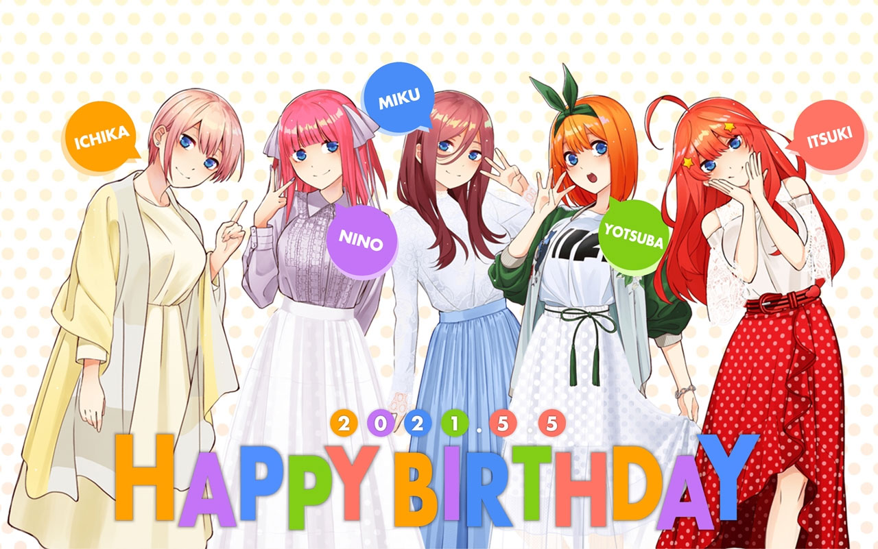 Happy Birthday!!#quintessentialquintuplets #GoToubunnoHanayome #五等分の花嫁 #五等分の花嫁誕生日 #中野家の五つ子誕生祭 #中野家の五つ子誕生祭2021 pic.twitter.com/sUWMkAHCNT— glox (@gloxuba) May 4, 2021