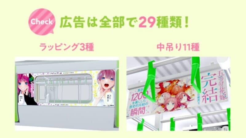 El sitio web de la revista Weekly Shonen Magazine, de la editorial Kodansha, reveló un primer vistazo al vagón de tren que conmemora el final del manga Go-Toubun no Hanayome.