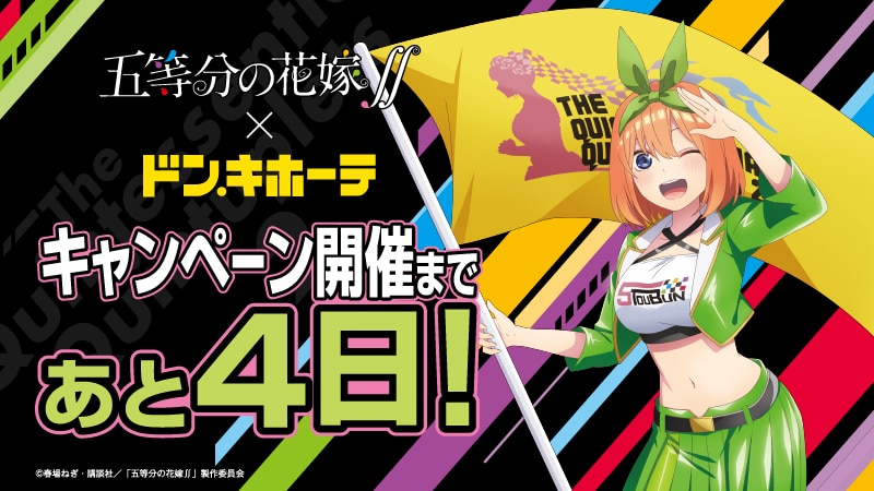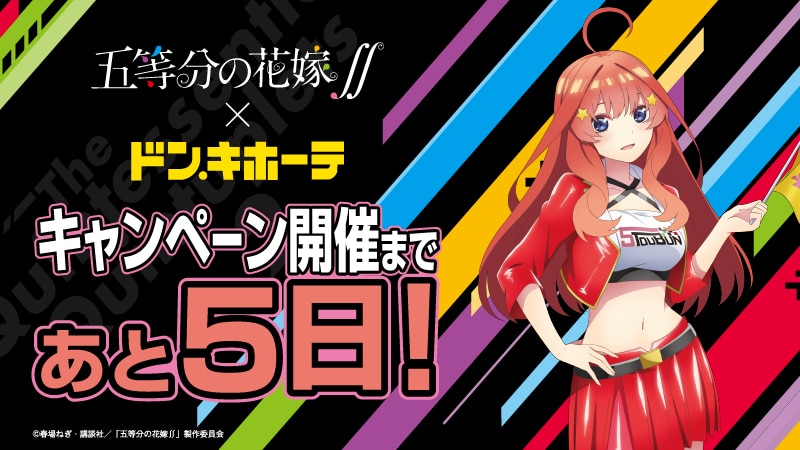 La cuenta de Twitter de la adaptación al anime del manga Go-Toubun no Hanayome anunció una colaboración con la marca Don Quijote para lanzar a la venta una gran variedad de productos donde las las quintillizas se vestirán de porristas.