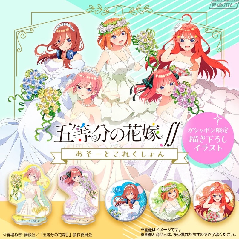 La adaptación al anime del manga Go-Toubun no Hanayome (The Quintessential Quintuplets) anunció una colaboración Premium Bandai para lanzar una colección de acrílicos e insignias de las quintillizas luciendo hermosos vestidos de novia.