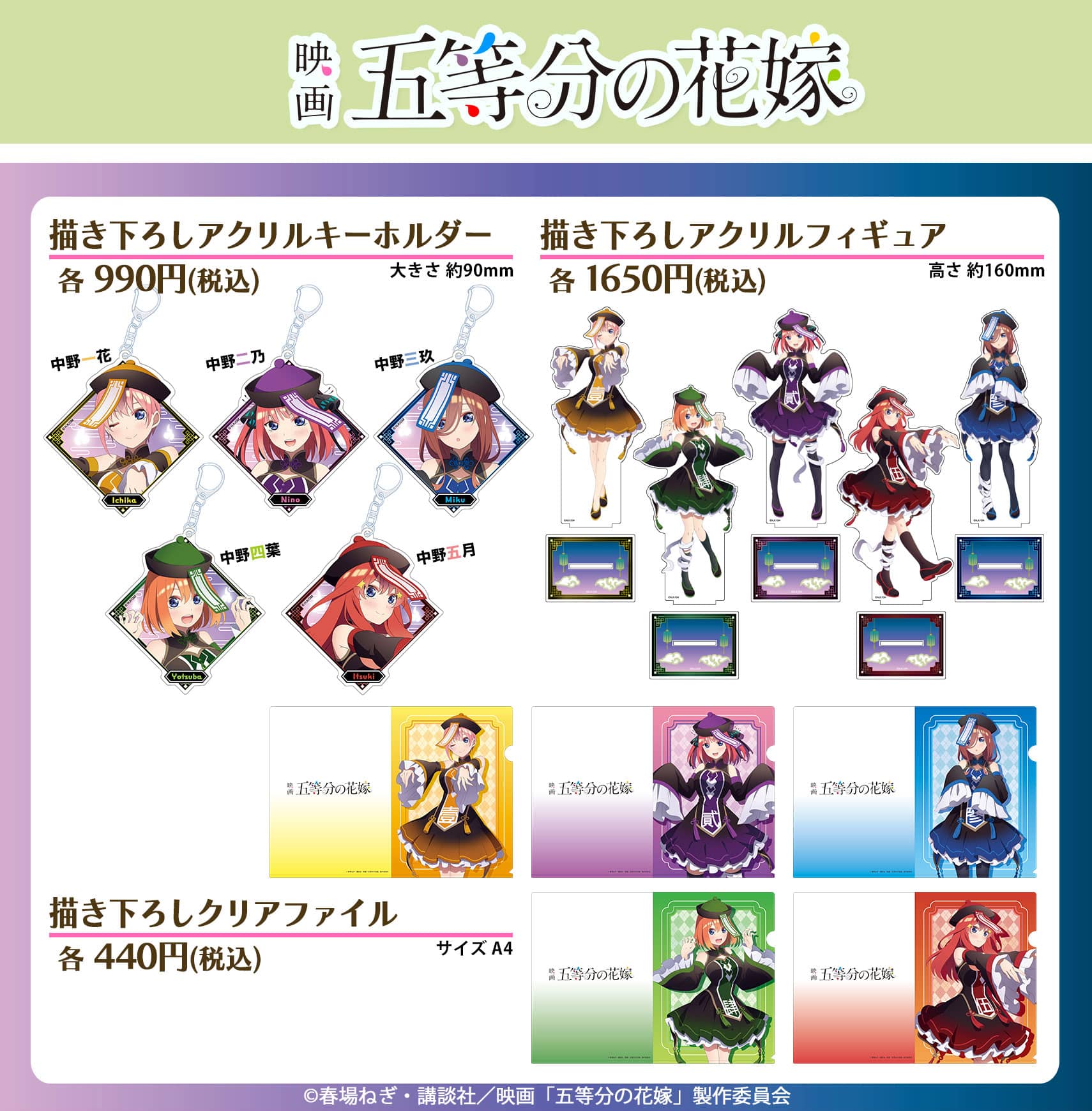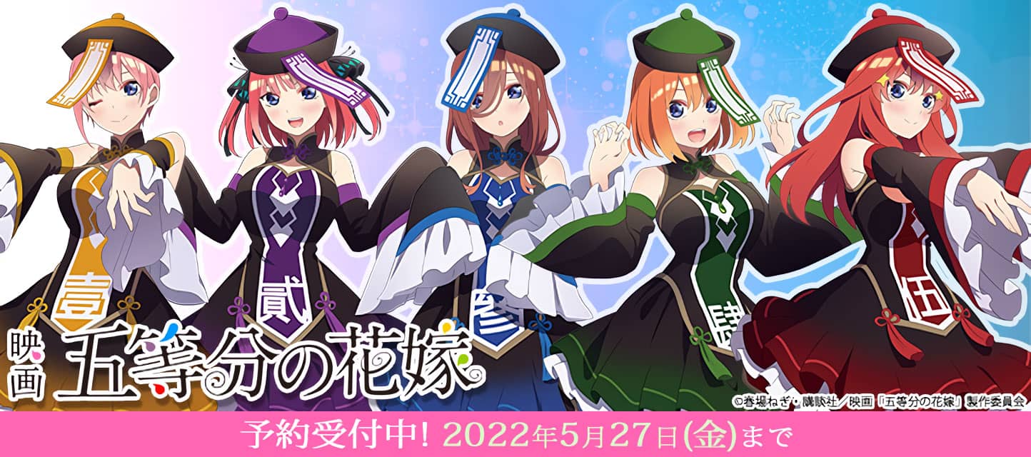 La colaboración entre la compañía Penguin Parade y el anime Go-Toubun no Hanayome comenzará el próximo 27 de mayo de este año. Como hemos mencionado anteriormente, la línea de productos que estarán disponibles para esta colaboración estarán inspirados en una ilustración realizada para la ocasión de los personajes Nino, Miku, Yotsuba, Itsuki e Ichika.