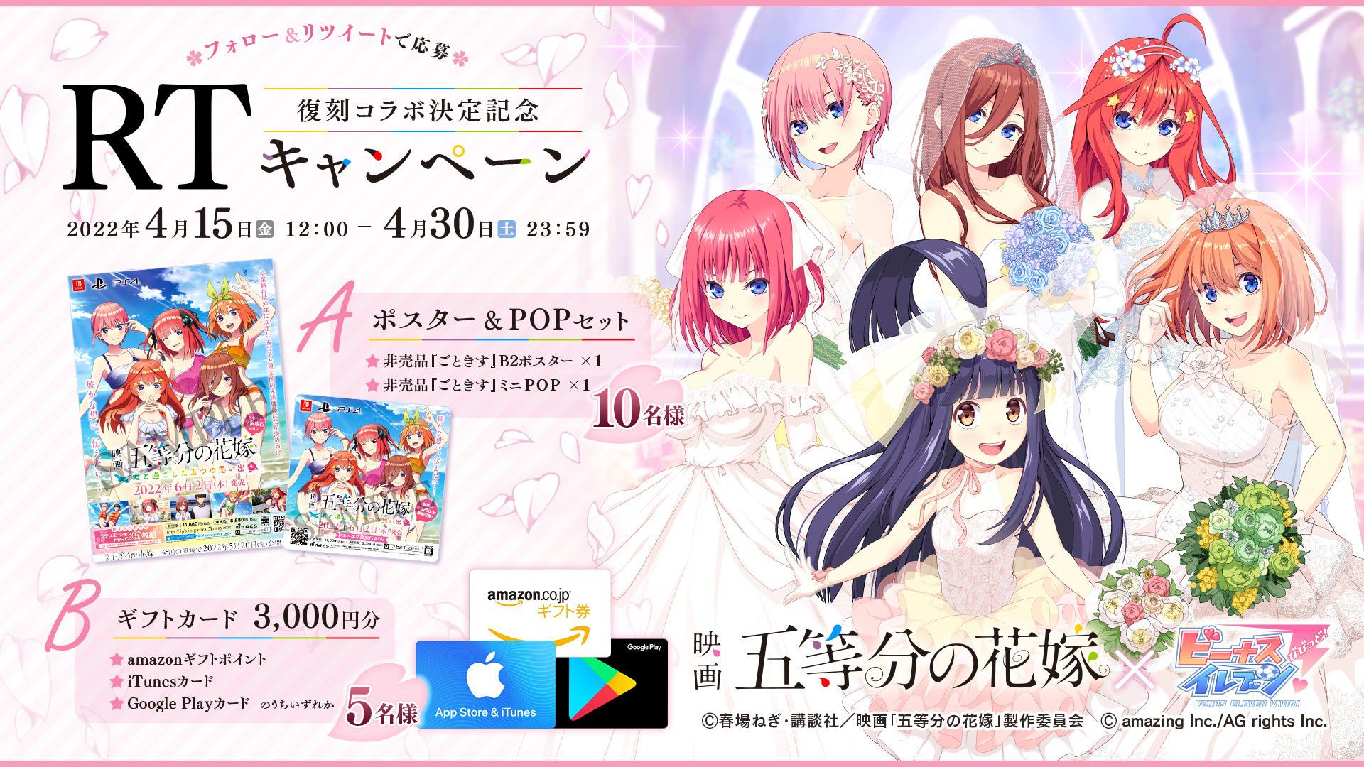 Cabe señalar que dicha campaña estará disponible en el Twitter oficial del videojuego Venus Eleven Bibiddo y funcionará para promocionar la próxima película del anime Go-Toubun no Hanayome.