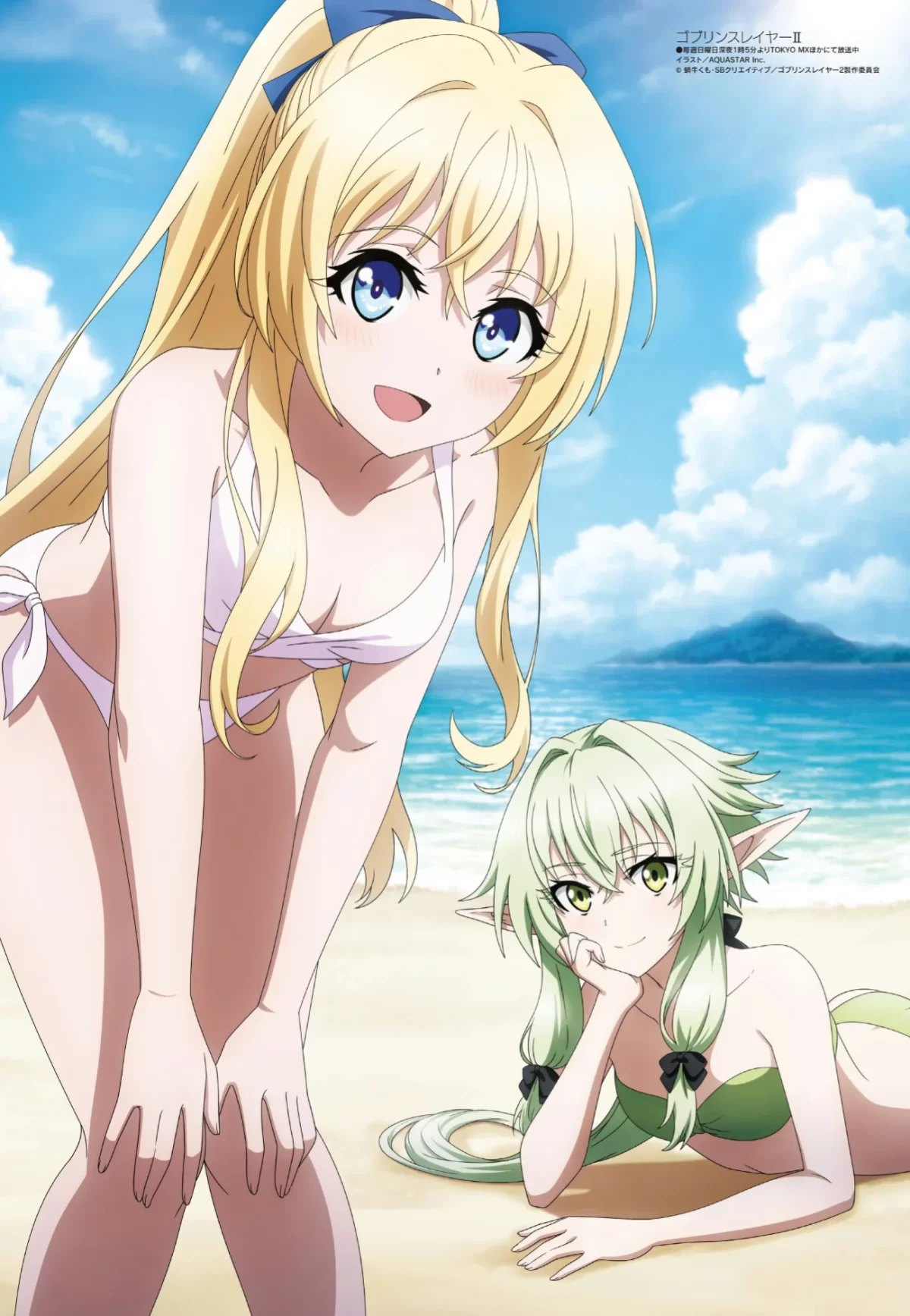 Goblin Slayer presenta a la Sacerdotisa y la Elfa Arquera con atractivo traje de baño