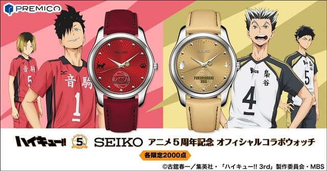La marca de artículos coleccionables Imperial Enterprise PREMICO junto a Seiko anunciaron dos nuevos relojes oficiales para conmemorar el quinto aniversario de Haikyuu.