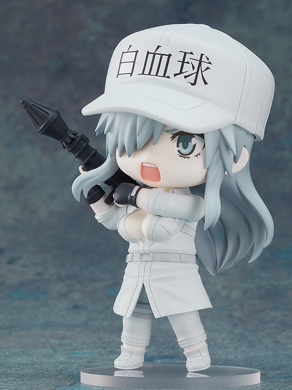 En esta nueva figura tenemos una versión Nendoroid articulada de la célula Leucocito con su traje usual visto en el anime. Esta figura incluye dos rostros intercambiables (Una seria y otra en combate). Además, también se incluye su característica katana y un lanzacohetes para poder recrear las escenas de combate. Como un agregado se incluye unas pegatinas para recrear el conducto por el cual se le ve salir de constante en el anime. La figura está construida en plásticos ABS y PVC de alta calidad.