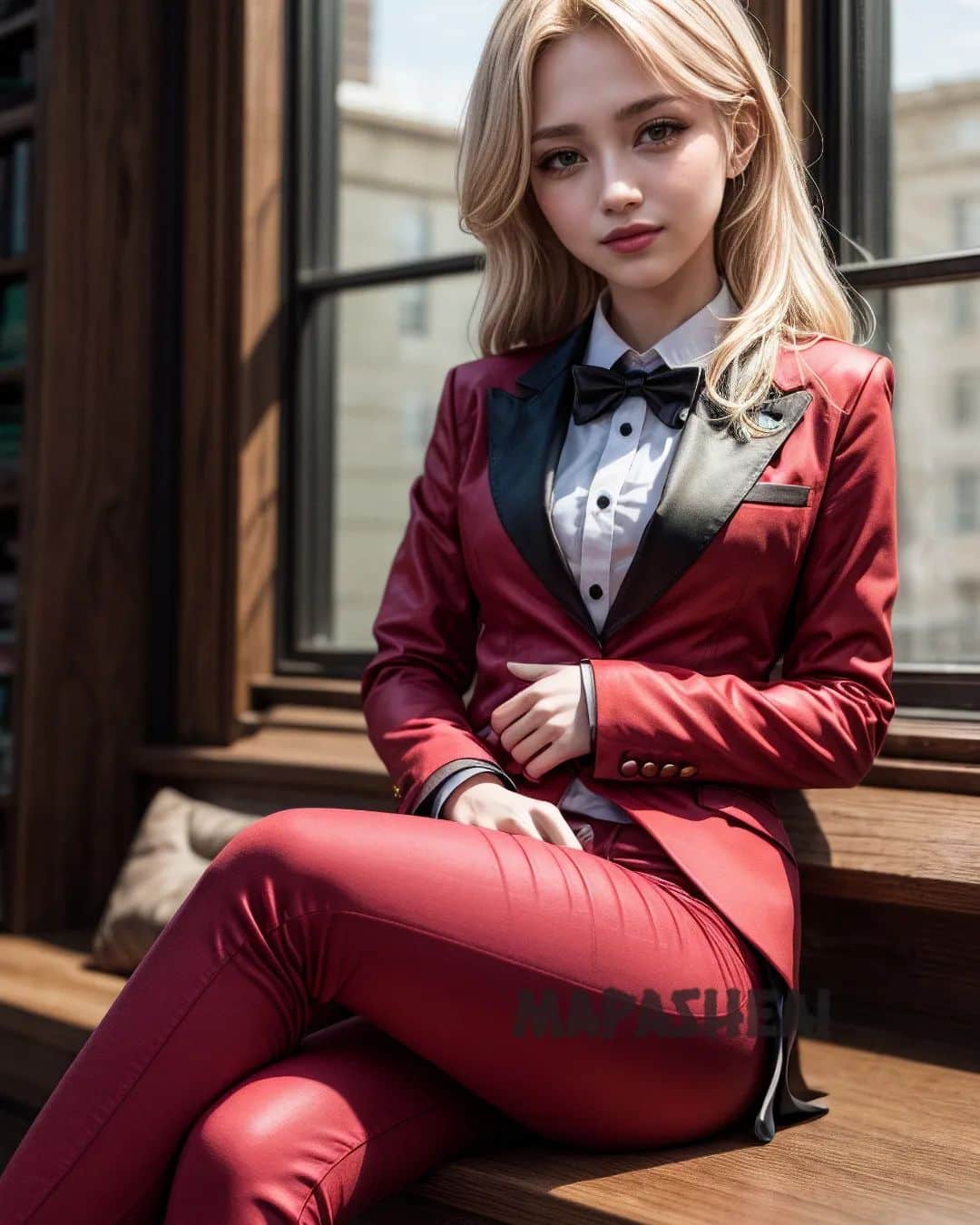 En cuanto al vestuario que se puede ver que utiliza en las ilustraciones, se puede ver que es de manera idéntica al que Charlie suele usar en Hazbin Hotel, que consiste simplemente en una camisa blanca con un moño negro y un traje rojo muy intenso que asemeja mucho a los colores del infierno, por lo que en este aspecto de la imagen hicieron un muy buen trabajo recreando a la perfección su atuendo característico que utiliza en la serie.