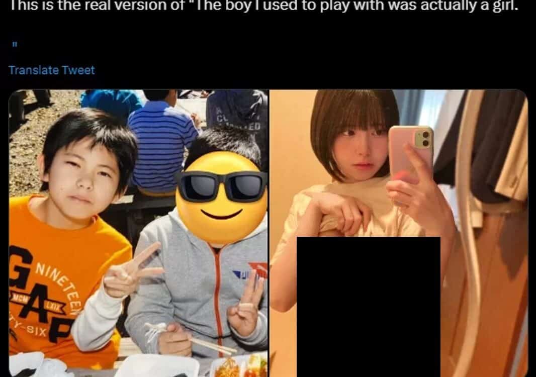 Esto provoco una avalancha de reacciones por parte de la comunidad japonesa, logrando una gran cifra de 8,2 millones de visitas. Lo especial de esto es que ella misma describe la publicación como: ¡Una versión realista de «El niño con el que solía jugar era en realidad una niña»!, haciendo una clara referencia al popular cliche del anime y manga sobre la amiga de la infancia que parecía un niño.