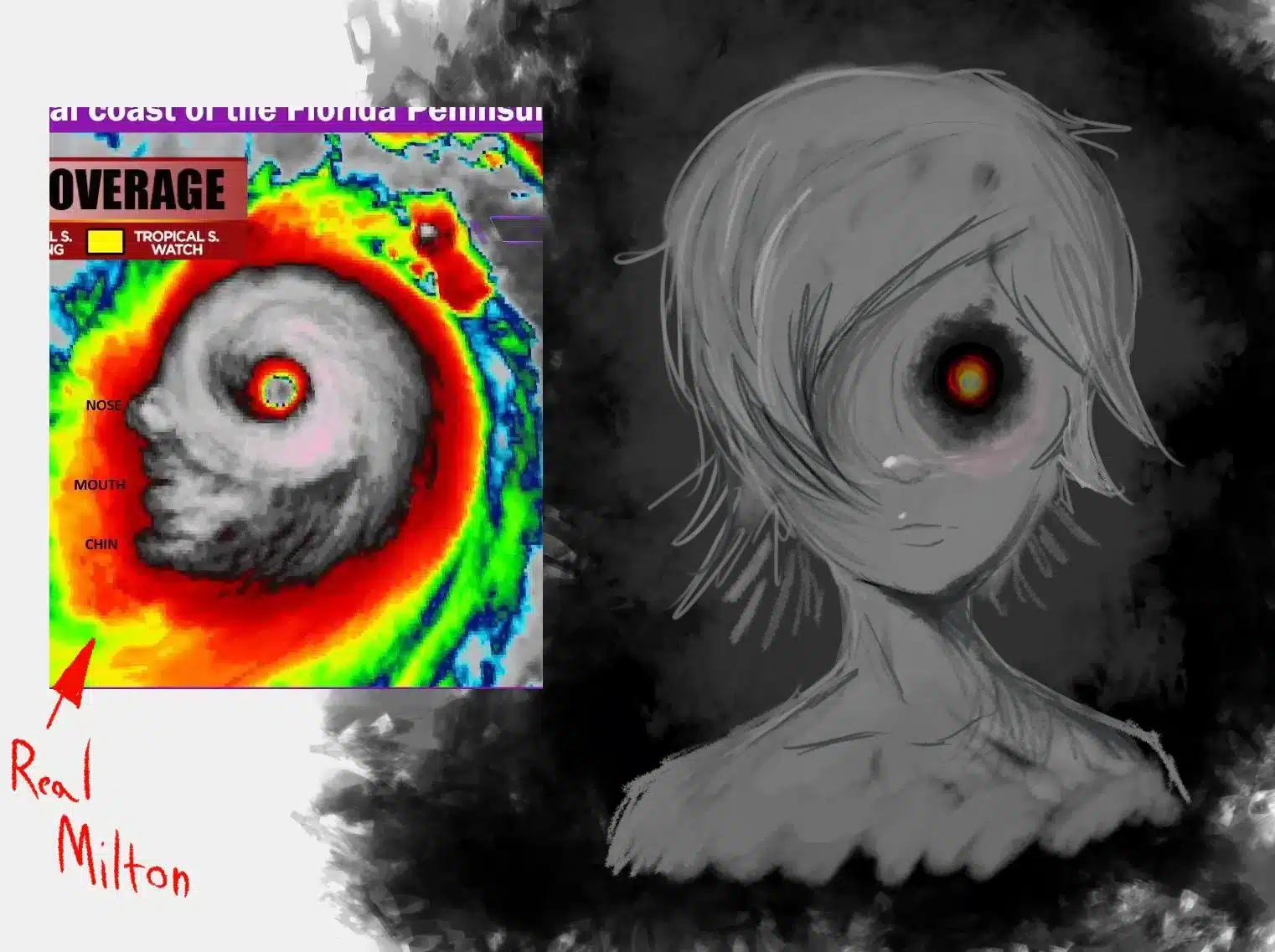 El terrible Huracán Milton es convertido en una waifu